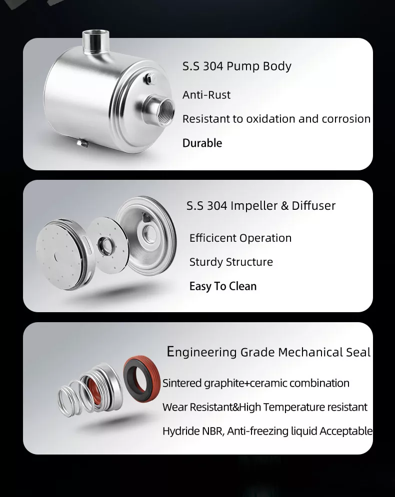 RisFull rated စီးဆင်းမှု capcacity 8M³ / H Smart Inverter Smart Inverter Stainlter Stainlter Stainless Steel Multrifugal Pump
